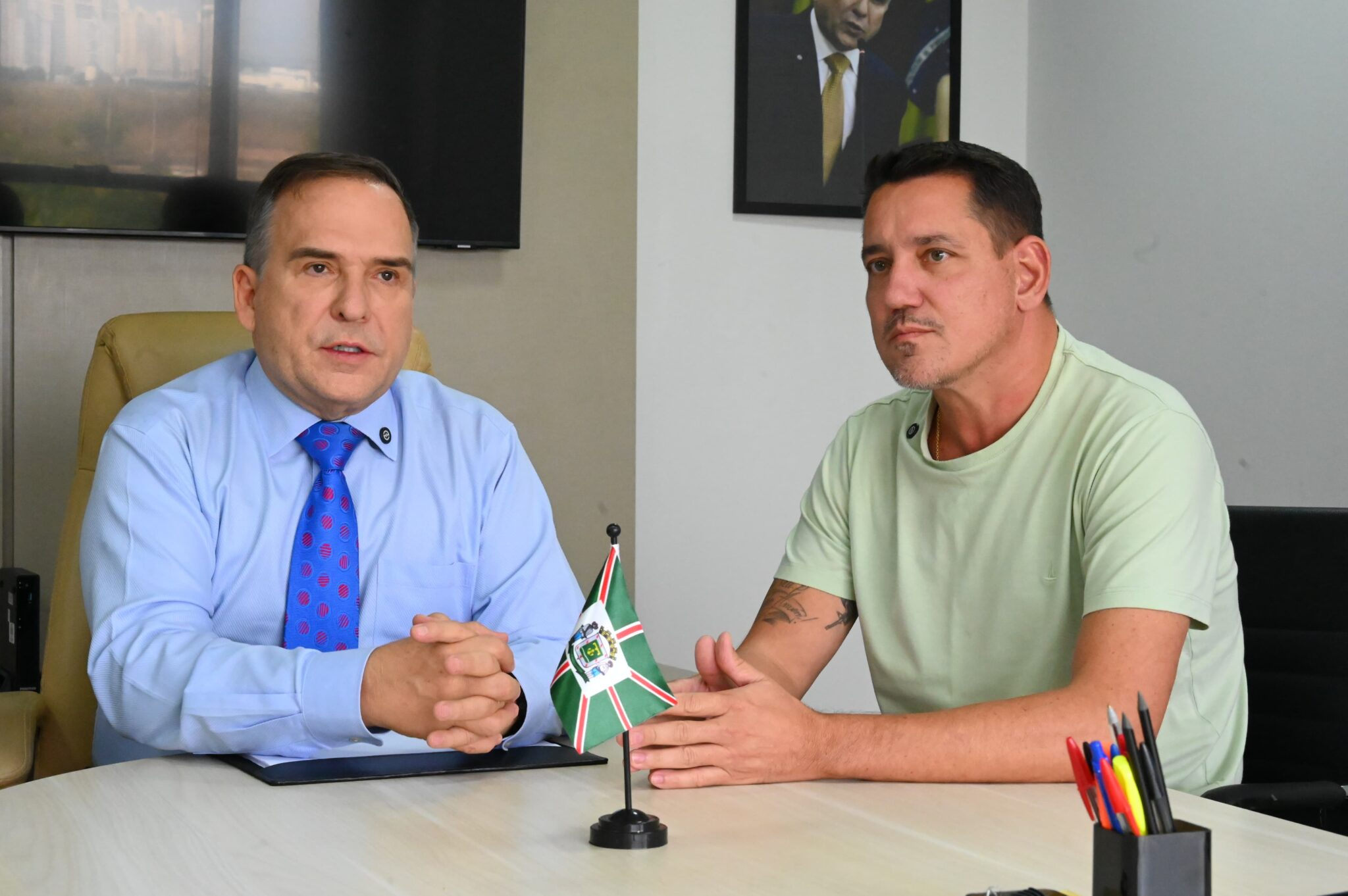 O prefeito de Goiânia, Sandro Mabel, se reuniu nesta terça-feira (24/6) com o presidente do SindiGoiânia, Ronaldo Gonzaga, para definir o cronograma de pagamento do piso salarial dos professores e da data-base dos servidores públicos municipais. Segundo Mabel, o pagamento do piso será feito em duas etapas: a primeira a partir de 1º de julho e a segunda em 1º de setembro. Já a data-base será implementada a partir de setembro.